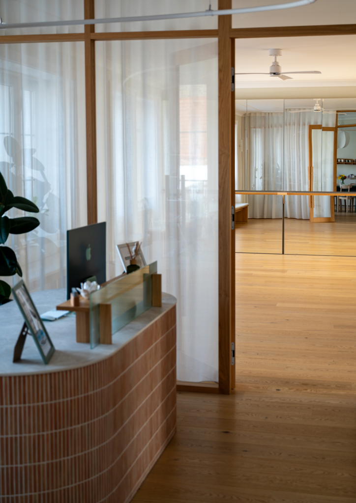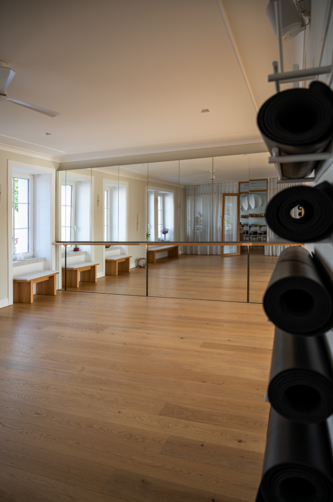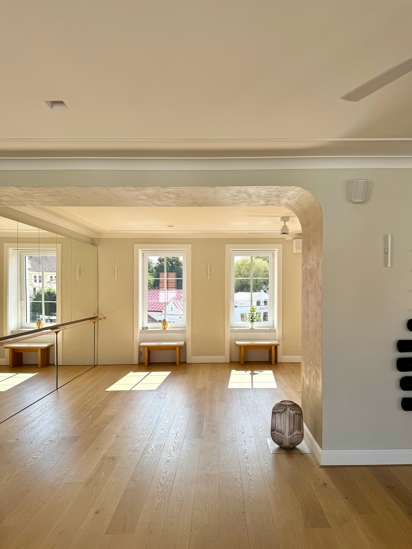 Studio nabízí sál pro až 18 cvičících osob, prostornou recepci, příjemnou lounge zónu i plně vybavené zázemí se šatnami, kuchyňkou a sprchou.