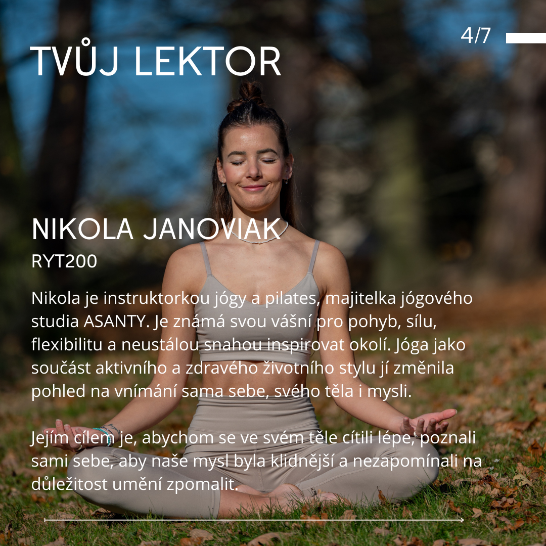 - 4 x 75 minutová lekce jógy (asánová praxe, pranájáma, meditace)